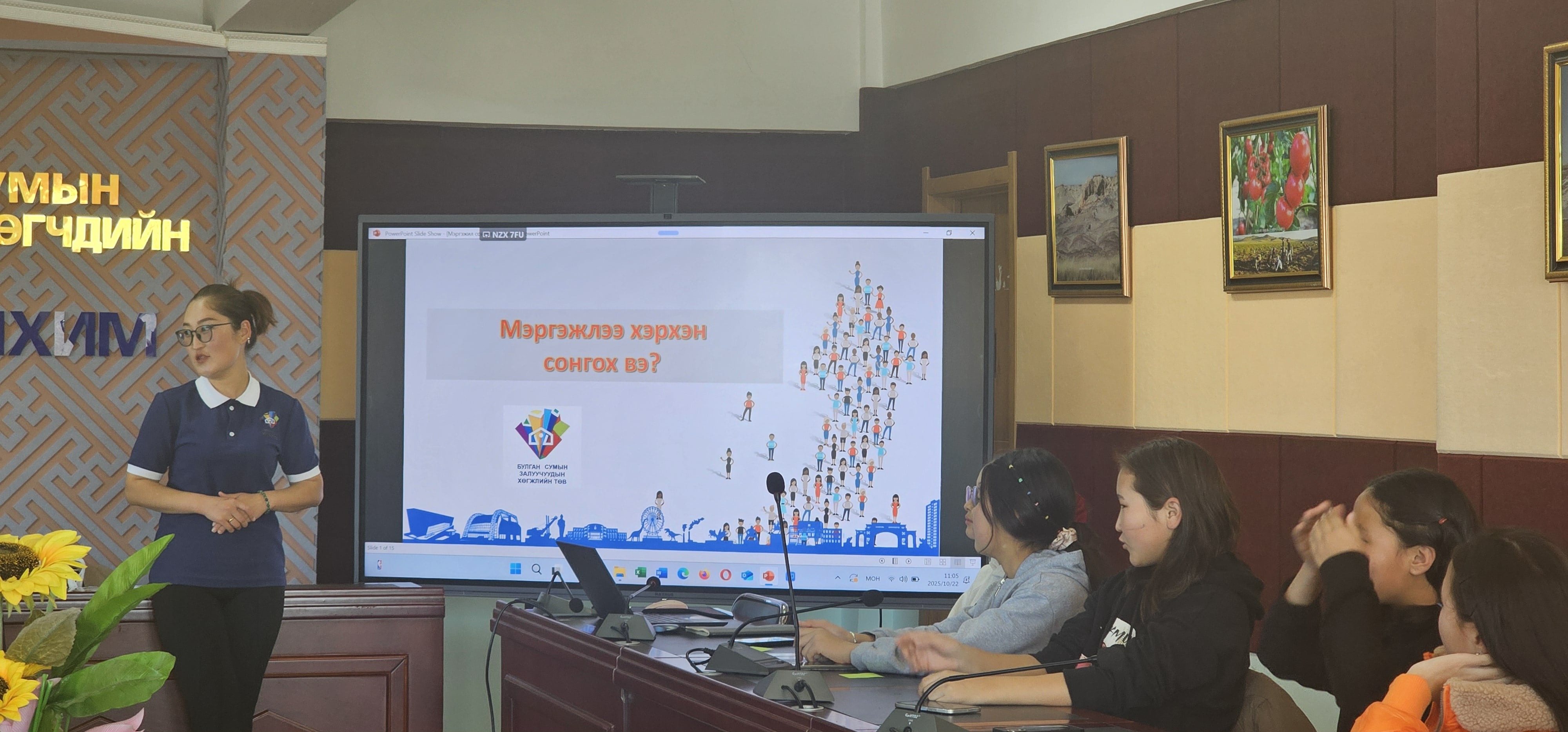 Булган сумын Ерөнхий боловсролын сургуулийн 8-9 дүгээр ангийн сурагчдад "Мэргэжлээ хэрхэн зөв сонгох вэ" сургалт мэдээллийг 2025 оны 10 сарын 22-ны өдөр Иргэний танхимд зохион байгуулж 25 сурагч хамрагдлаа.